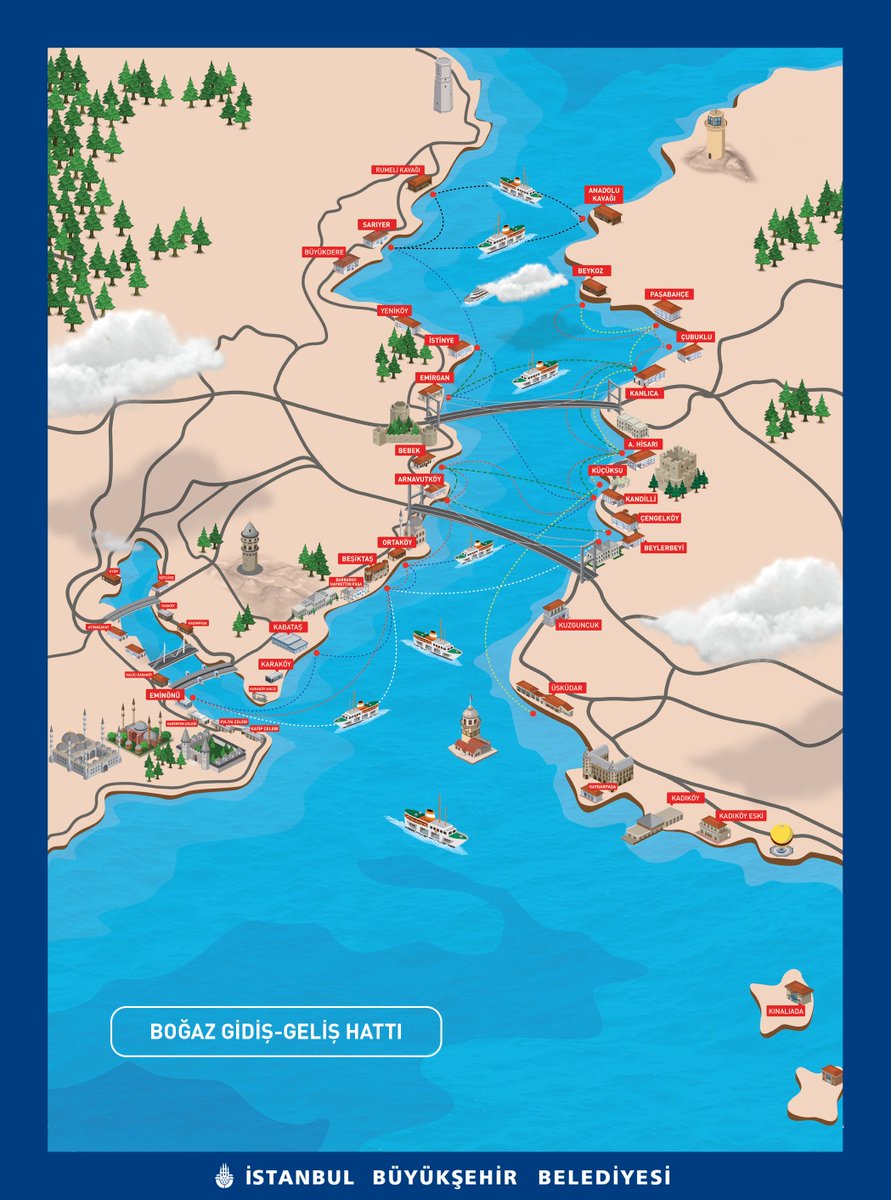 Городские паромы курсируют между причалами в Стамбуле. А междугородние идут в другие города (Ялова, Армутла, Бурса, Бандырма, Гемлик и др.), а также на острова Адалар в Мраморном море.