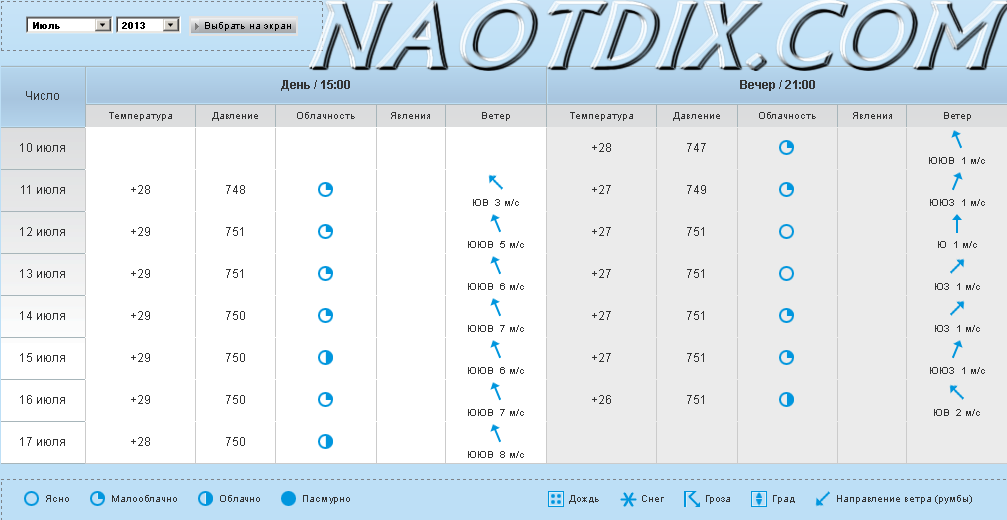 Прогноз основан на информации о погоде на данном курорте, собранной за последние пять лет.