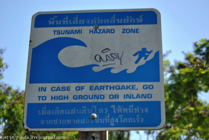 В 2004 году остров Пода полностью смыло во время цунами. В память об этом печальном событии на пляже установлен знак, который показывает уровень воды 26 декабря 2004 года. По странному совпадению мы приехали на остров Пода ровно десять лет спустя 26 декабря 2014 года.