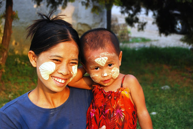 Все бирманцы обмазывают себе лицо тальком, а потом как бы плохо его смывают, чтобы был виден тальк. Приглядитесь к фото выше, лицо женщины в белой кофточке испачкано белым тальком.