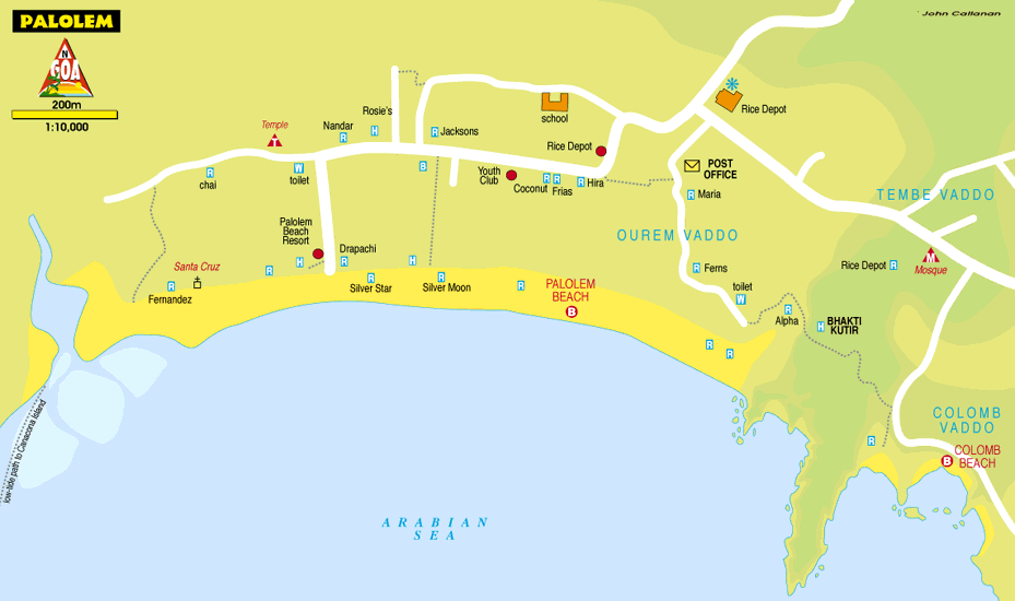 Один из самых дальних пляжей, Палолем до недавнего времени не входил в сферу интересов турбизнеса. Поэтому здесь до сих пор сохранилась атмосфера спокойствия и естественности. Белые пески, голубое море, зеленые пальмы. Несколько крошечных лесистых островков разнообразят морской пейзаж. До них можно добраться, заплатив местным рыбакам. Лотков с сувенирами здесь пока не слишком много. На северной оконечности пляжа бьет пресный источник, достаточно большой, чтобы посреди него образовался еще один островок. Самые популярные развлечения — рыбалка и поездки к месту игр дельфинов.