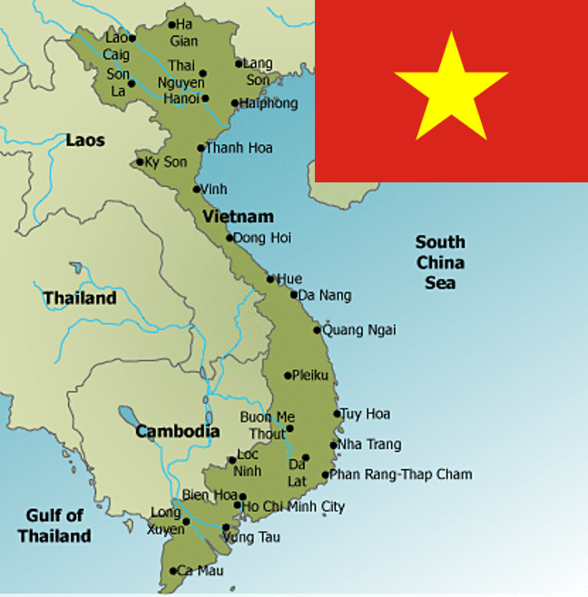 Вьетнам — государство в Юго-Восточной Азии. На севере граничит с Китаем, на западе — с Китаем. С юга и востока омывается Южно-Китайским морем. Вьетнам на карте мира пролегает S-образной змейкой вдоль восточной кромки полуострова Индокитай. Сами вьетнамцы находят сходство этой формы с коромыслом с двумя корзинами — традиционного приспособления, которое используется крестьянами при уборке риса. И это сравнение справедливо, ибо дельты рек Хонгха (на севере) и Меконга (на юге) — главные рисовые житницы страны. Государству также принадлежат территории нескольких островов: Кондао, Фукуи, Кхоай, Ре, Тям и других. Столица Вьетнама — город Ханой.