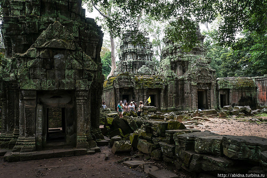 4-й корпус с Залом танцоров Восточные ворота четвертого корпуса содержат изображения нескольких буддийских сцен. Лица большинства изображений Будды были уничтожены в середине 13 века, когда король Джаяварман VIII восстановил шиваизм в качестве официальной религии.