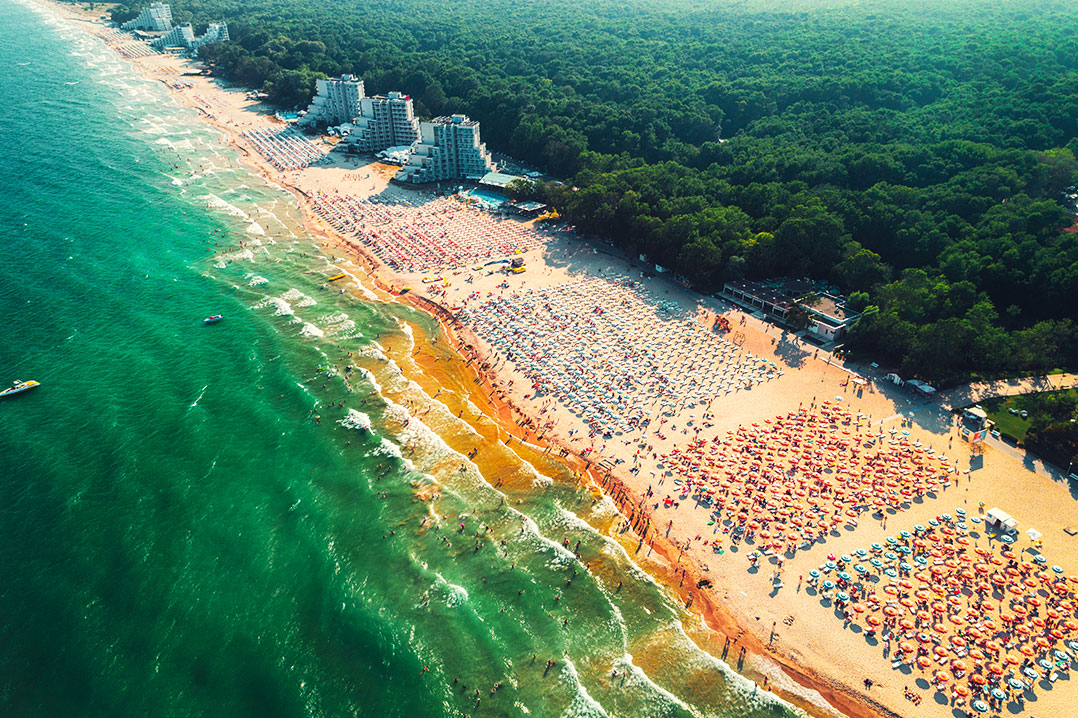 Русскоязычный курорт. Для детей здесь 3 аквапарка, луна-парк и зоосад. Неширокие пляжи с серым песком и пологим заходом в море.