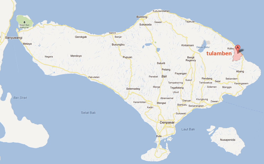 - Google map координаты (-8.411917, 115.587444) –примерно 7 км. к северу от города Амлапура.