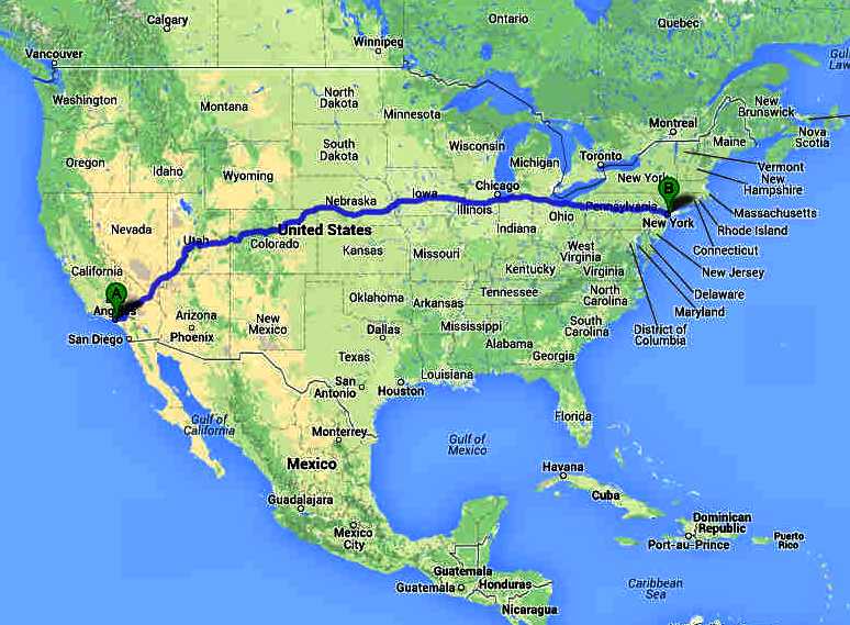 Нью-Йорк → Буффало → Чикаго → Денвер → Национальный парк Арки → Каньонлэндс → Долина Монументов → Гранд-Каньон → Брайс-Каньон → Зайон → Лас-Вегас → Долина Смерти → Йосемити → Сан-Франциско → Биг Сур → Лос-Анджелес → Майами