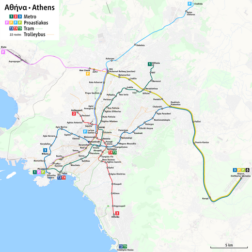 Линии афинского метрополитена : Линии афинского метро соединяют несколько крупных районов города. На метро можно добраться до аэропорта, морского порта, центрального железнодорожного вокзала.