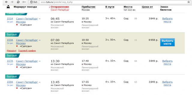 | 020Y | Москва-Санкт-Петербург | 00:56 | 08:53 |