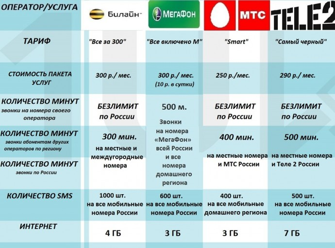 | Входящие | Исходящие | Смс | Мобильный интернет |