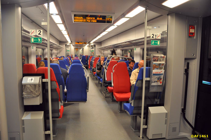 Как правило, в вагоне от 30 до 50 мягких кресел. Часто количество пассажиров превышает количество посадочных мест (обычно это бывает на пригородных маршрутах в часы пик), и тем, кто садится на промежуточную остановку, приходится стоять.