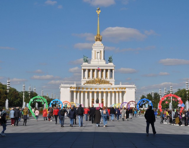 ΠΠΠΠ₯ΠΡΡΡΠ°Π²ΠΊΠ° Π΄ΠΎΡΡΠΈΠΆΠ΅Π½ΠΈΠΉ Π½Π°ΡΠΎΠ΄Π½ΠΎΠ³ΠΎ Ρ ΠΎΠ·ΡΠΉΡΡΠ²Π° Π²ΠΏΠ΅ΡΠ²ΡΠ΅ Π±ΡΠ»Π° ΠΎΡΠΊΡΡΡΠ° Π²Β 1939 Π³ΠΎΠ΄Ρ. Π‘Β ΠΠΠΠ₯ ΠΎΡΠΊΡΡΠ²Π°Π΅ΡΡΡ Π²ΠΈΠ΄ Π½Π°Β Π²ΡΠ΅ Π·Π½Π°ΠΊΠΎΠ²ΡΠ΅ Π΄ΠΎΡΡΠΎΠΏΡΠΈΠΌΠ΅ΡΠ°ΡΠ΅Π»ΡΠ½ΠΎΡΡΠΈ ΠΠΎΡΠΊΠ²Ρ, ΡΠ°ΠΊΠΈΠ΅ ΠΊΠ°ΠΊ ΠΡΡΠ°Π½ΠΊΠΈΠ½ΡΠΊΠ°Ρ ΡΠ΅Π»Π΅Π±Π°ΡΠ½Ρ ΠΈΒ ΡΡΠ°Π»ΠΈΠ½ΡΠΊΠΈΠ΅ Π²ΡΡΠΎΡΠ½ΡΠ΅ Π΄ΠΎΠΌΠ°. ΠΠΌΠ΅Π½Π½ΠΎ Π½Π°Β ΠΠΠΠ₯ Π½Π°Ρ ΠΎΠ΄ΡΡΡΡ Π·Π½Π°ΠΌΠ΅Π½ΠΈΡΡΠ΅ ΡΠΊΡΠ»ΡΠΏΡΡΡΡ Β«Π Π°Π±ΠΎΡΠΈΠΉ ΠΈΒ ΠΠΎΠ»Ρ ΠΎΠ·Π½ΠΈΡΠ°Β» ΠΈΒ Β«Π€ΠΎΠ½ΡΠ°Π½ ΠΡΡΠΆΠ±Ρ ΠΠ°ΡΠΎΠ΄ΠΎΠ²Β», Π°Β 49 ΠΎΠ±ΡΠ΅ΠΊΡΠΎΠ², ΡΠ°ΡΠΏΠΎΠ»ΠΎΠΆΠ΅Π½Π½ΡΡ Π½Π°Β ΠΠΠΠ₯ ΠΏΡΠΈΠ·Π½Π°Π½Ρ ΠΏΠ°ΠΌΡΡΠ½ΠΈΠΊΠ°ΠΌΠΈ ΠΊΡΠ»ΡΡΡΡΠ½ΠΎΠ³ΠΎ Π½Π°ΡΠ»Π΅Π΄ΠΈΡ.