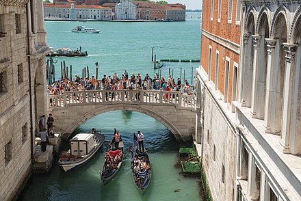 Венецианский мост Вздохов (Ponte dei Sospiri) — старейшая достопримечательность, ежегодно привлекающая толпы туристов. Он представляет собой закрытую арочную конструкцию в стиле барокко длиной 11 метров, которая соединяет здание бывшей тюрьмы и дворец Дожей (Palazzo Ducale).