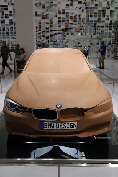 Zahlreiche BMW Fahrzeuge wurden nun auf der gekrümmten Schalenfläche ausgestellt. Anhand eines BMW 320i, der – in alle Einzelteile zerlegt – einen großen Wandabschnitt beeckte, wurde die Komplexität des Automobilbaus vor Augen geführt.