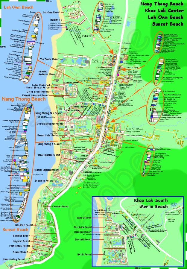 В отличие от Банг Нианг, который прилично вытянут в ширину (т.е. отели, и рестораны идут перпендикулярно морю примерно на километр), этот больше вытянут в длину. Основная инфраструктура находится рядом с побережьем, а также на главной дороге, по которой курсируют автобусы с Пхукета в Бангкок. Есть Макдоналдс и огромный дайв-центр.