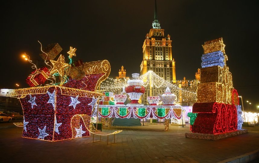 Заманчивое световое шоу, фейерверк и катание на коньках — вот несколько причин посетить Москву в канун Нового года.