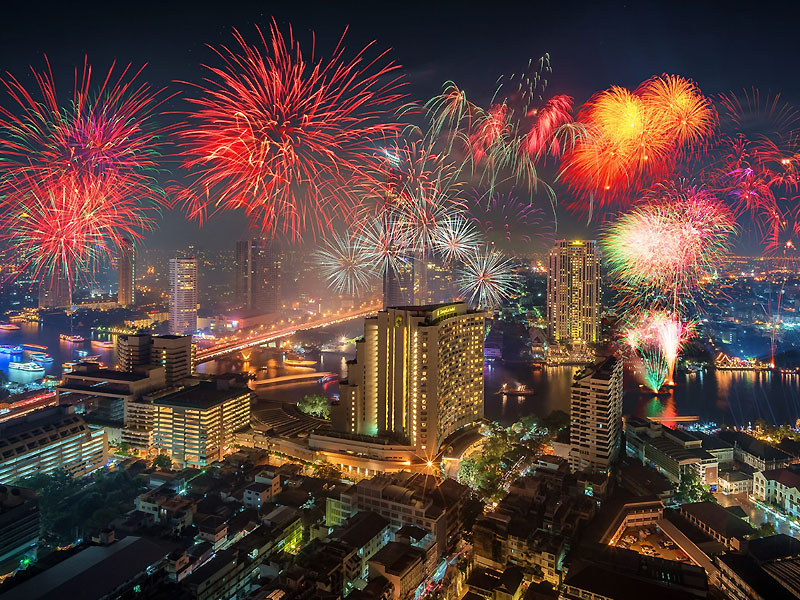 Бангкок предлагает провести новогоднюю ночь 2018 в классическом стиле декадентских вечеров с ужином на крыше с шампанским, любованием фейерверками или круиза на роскошной лодке по реке Чайя Прайя.