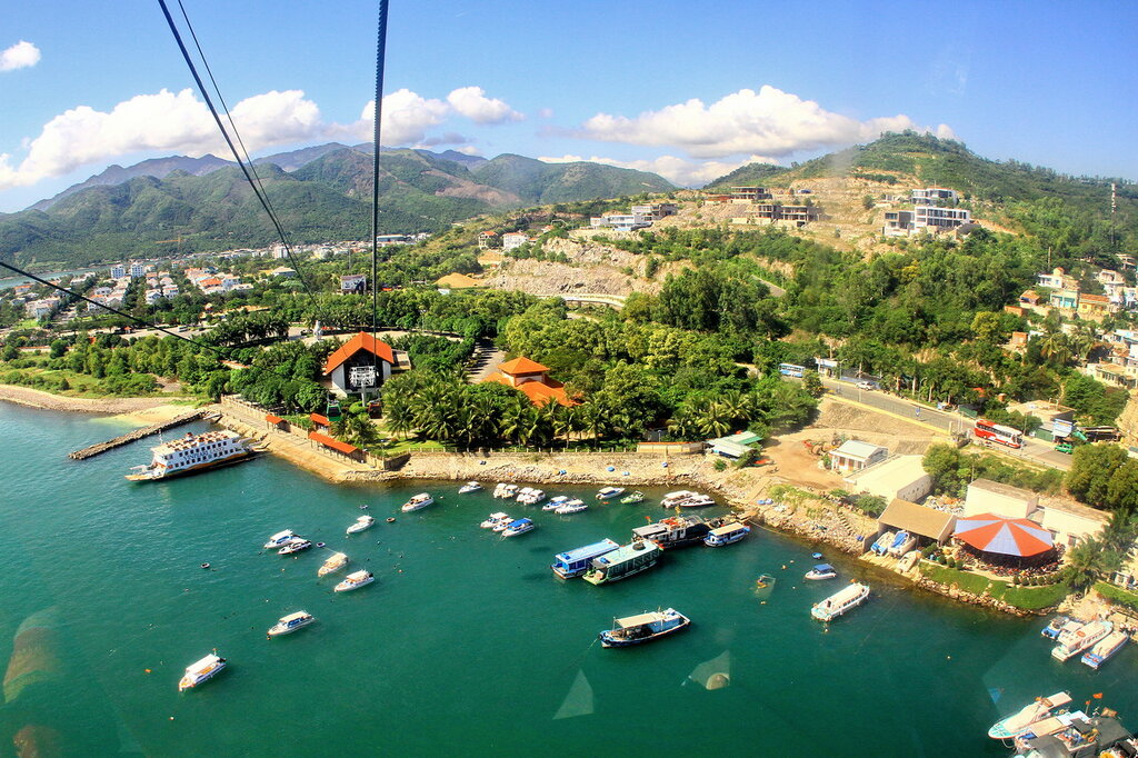 Во время поездки, при ясной погоде, открывается красивый вид на Нячанг. Стекла в кабинках чистые, но поцарапанные, фотографии через них получаются не очень, но есть открытые окошки, в которые вмещается и телефон, и объектив фотоаппарата.