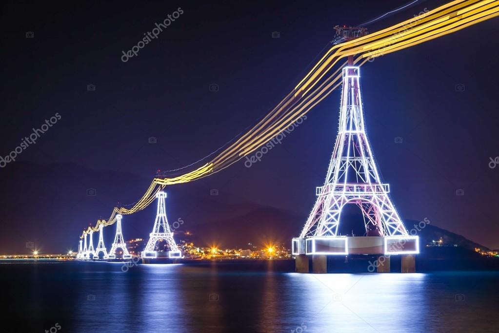 Канатная дорога имеет протяженность 3320 метров и является самой длинной канатной дорогой над морем в мире! Колонны, в количестве 9 штук, имеют форму и структуру Эйфелевой башни.