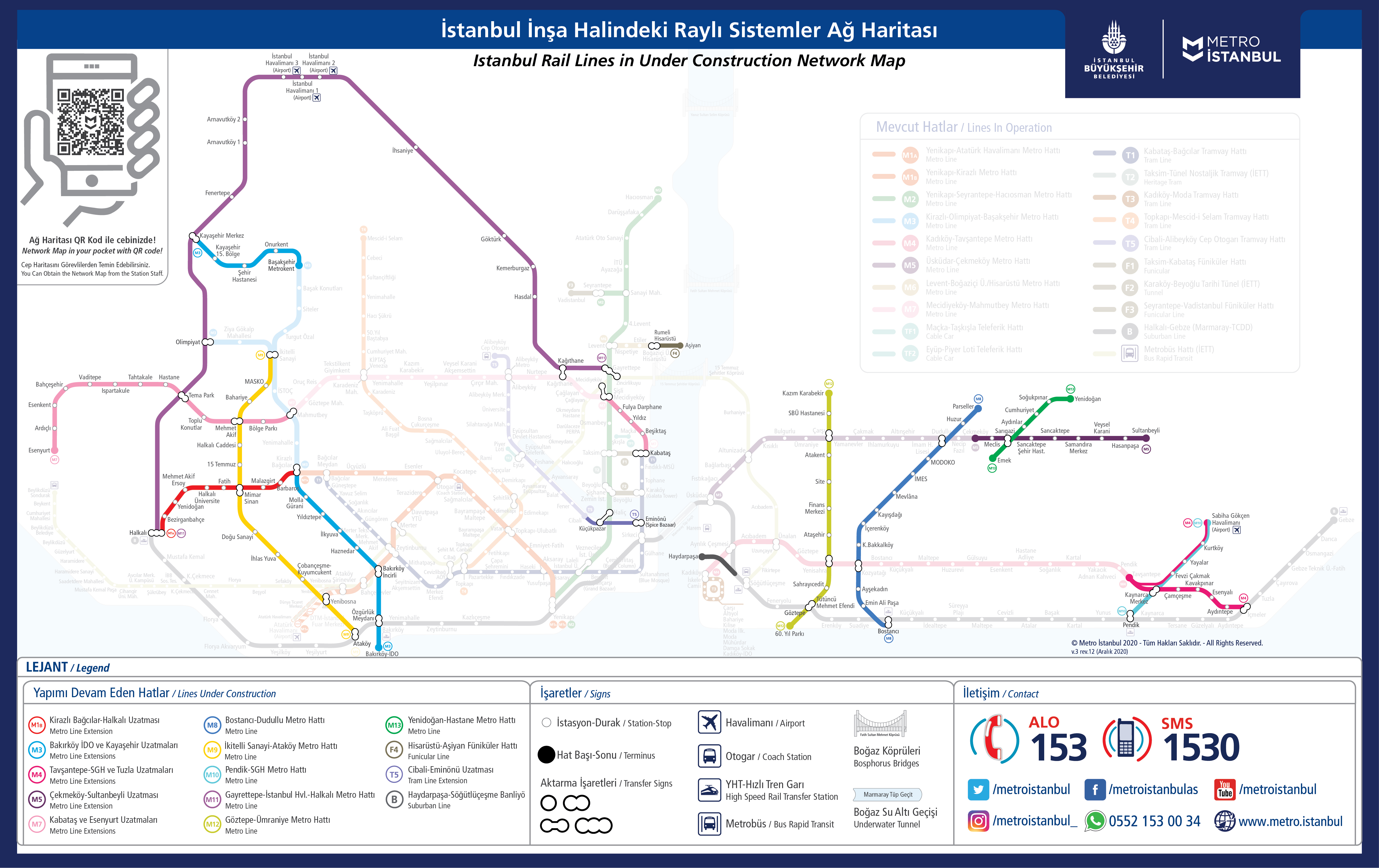 - все ветки метро Стамбула (маршруты начинаются с буквы М), включая ветку Marmaray,