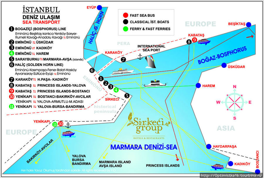 - самый лёгкий для освоения маршрут парома проходит по Золотому Рогу (Halic Hatti) — там сложно запутаться или сесть не на тот паром.