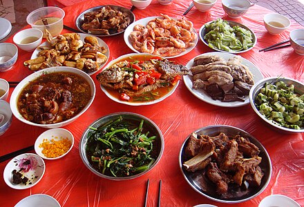 Кушают китайцы за круглыми столами. В центре ставят вращающуюся подставку из толстого стекла, благодаря которой можно дотянуться до понравившегося блюда. Порции большие. Пищу нарезает повар, причем небольшими кусочками, чтобы еду было удобно брать палочками. Последние могут быть сделаны из дерева, железа, серебра, слоновой кости, а чаще всего, из пластика. В каждом ресторане есть также ложки и вилки.