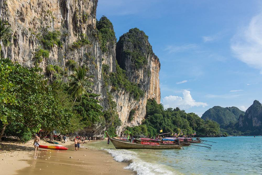 Рейли Бич находится на побережье одноимённого полуострова, попасть на него можно только по морю из Ао Нанга или с экскурсией из Паттайи и Пхукета.