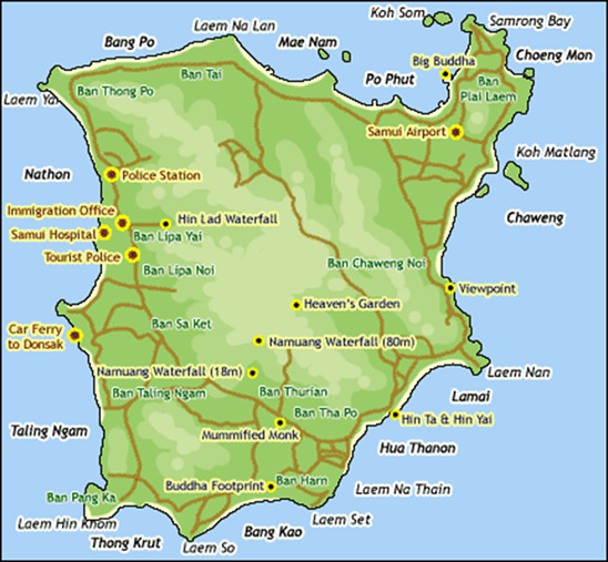 Тем, кто планирует совершить поездку по острову, рекомендуется приобрести карту острова Самуи.