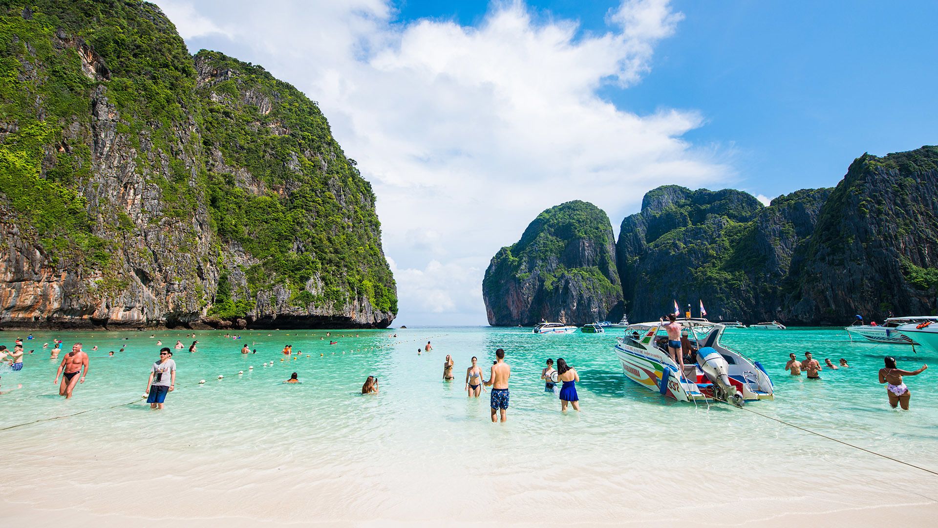 После популярного фильма «Пляж» с Леонардо Ди Каприо здесь полчища туристов.![]()