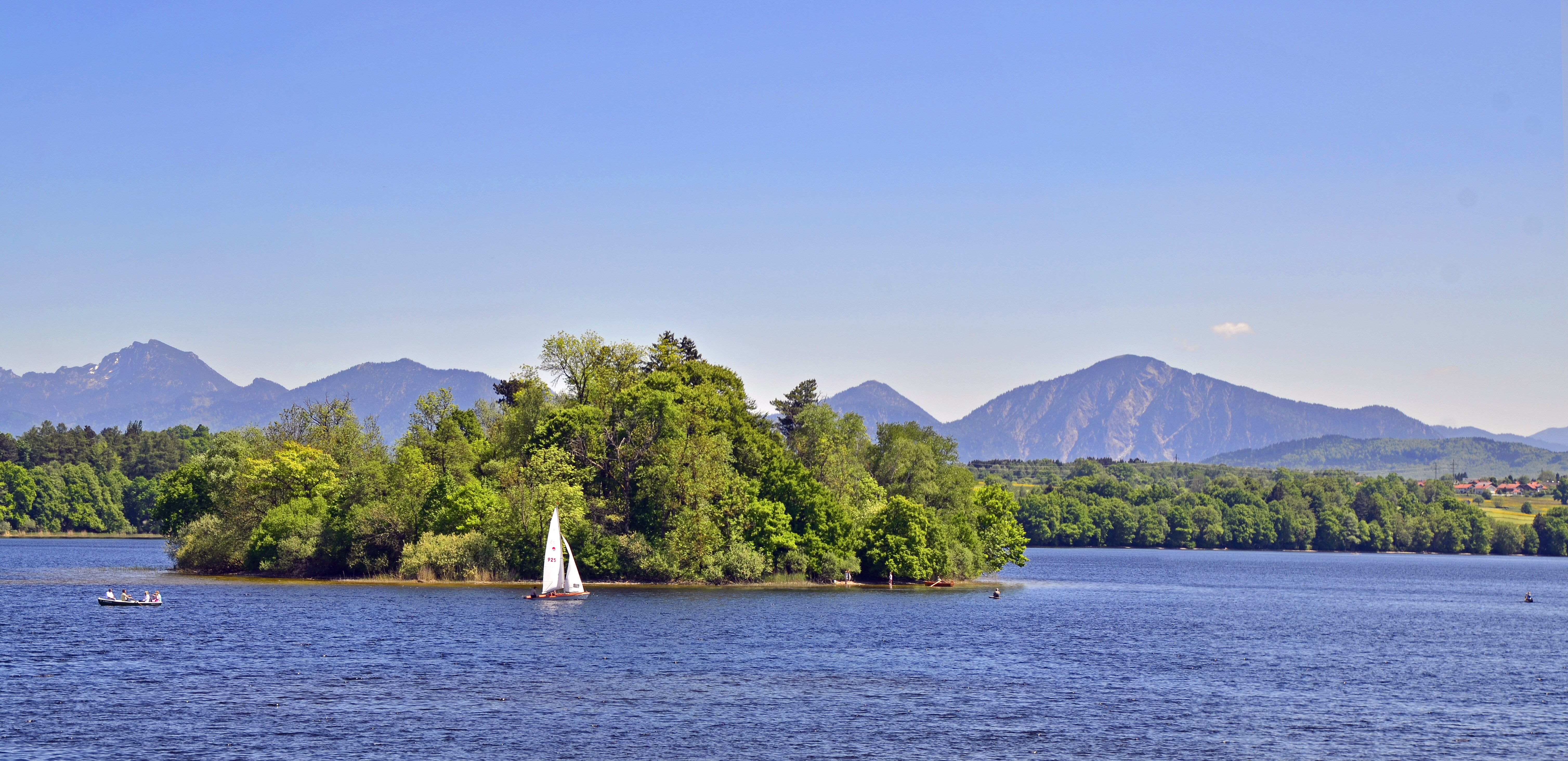 У небольшого западного берега, к югу от Поссенхофена, находится (Остров Роз), место королевской виллы Людвига II.![]()