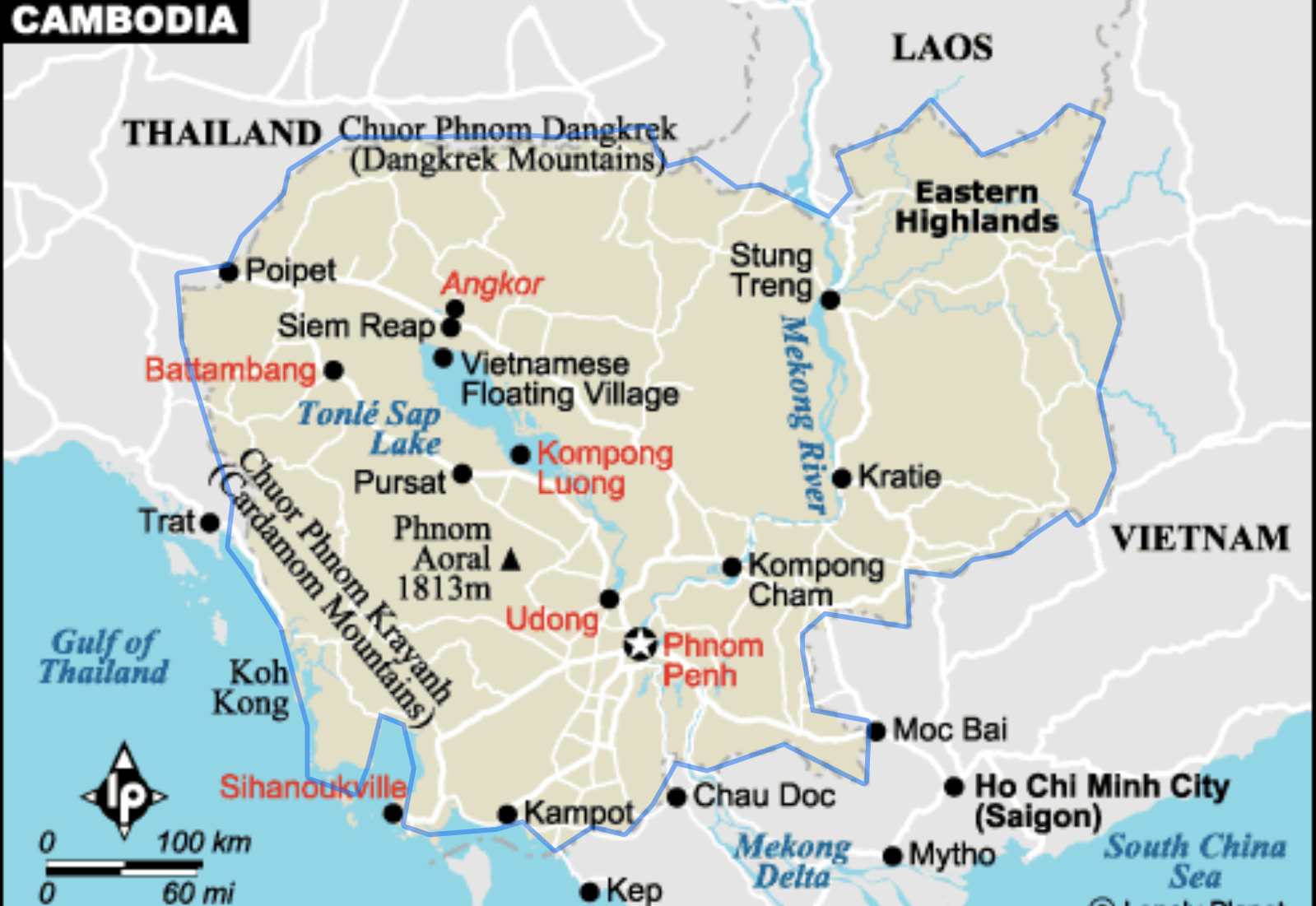 Само королевство Камбоджа располагается на полуострове Индокитай, поэтому его берега омываются водами Сиамского залива. В этой акватории круглый год температура воды не опускается ниже +21°C, позволяя туристам наслаждаться первоклассным пляжным, а также активным отдыхом.