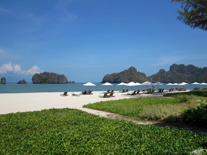 The Datai LangkawiОн принадлежит двум отелям 5* The Datai Langkawi и The Andaman a Luxury Collection Resort, и соответственно, отдыхать на его территории могут лишь их постояльцы. Дорогу, ведущую к морю и гостиницам, перекрывают шлагбаумы, да и охранники присутствуют. А никаких других возможностей попасть на пляж нет – всё заросло непроходимыми джунглями.