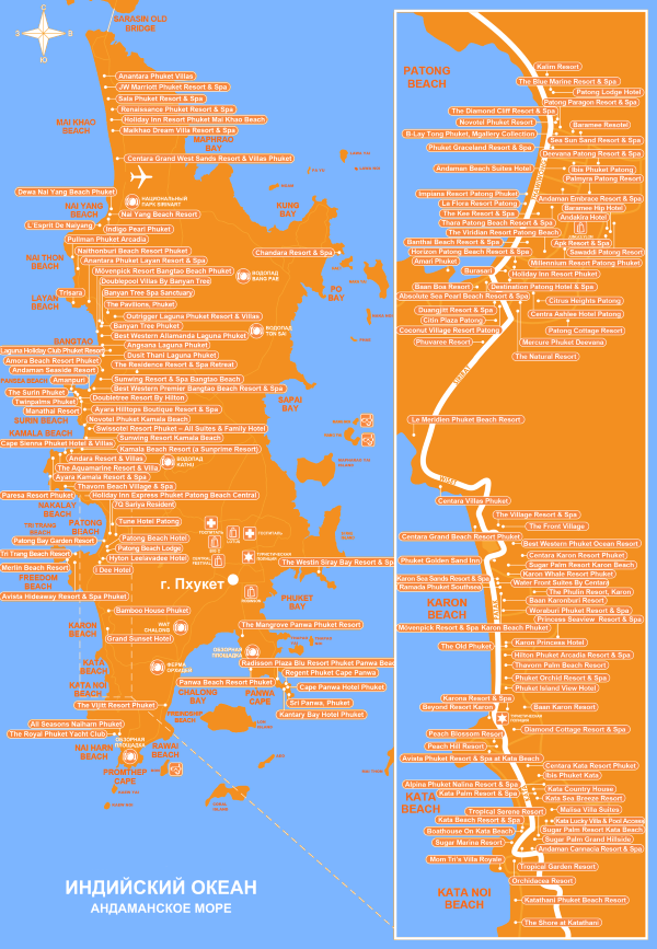 Карта всех пляжей Пхукета