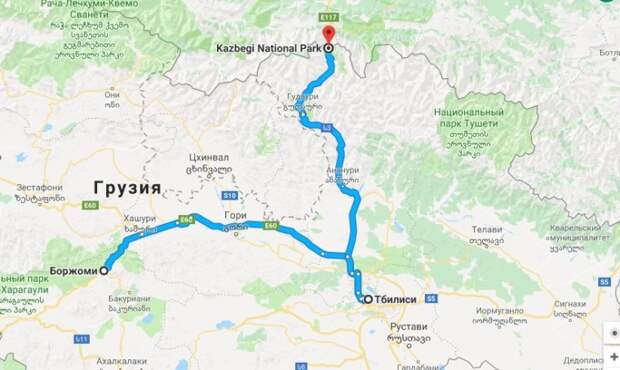 Маршрут:Тбилиси — Мцхета — село Уплисцихе — Боржоми — Кутаиси — Батуми
