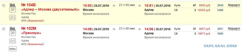 05-5.13, прибытием в Адлер в 5.45;