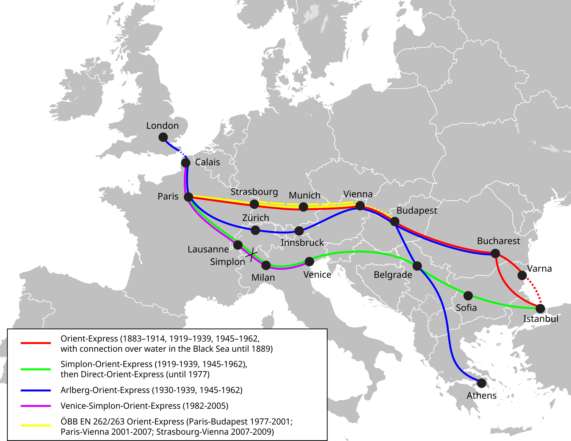 Карта начала 1990-х гг. показывает, насколько обширной когда-то была сеть ночных железных дорог с маршрутами из Парижа в Берлин, из Варшавы в Будапешт, из Амстердама в Прагу и из Парижа в Мадрид. Были даже планы создания «Ночной звезды», сестры Eurostar, только ночной, которая должна была доставлять пассажиров через недавно открытый (в 1994 г.) тоннель Ла-Манша из Лондона в Мадрид.