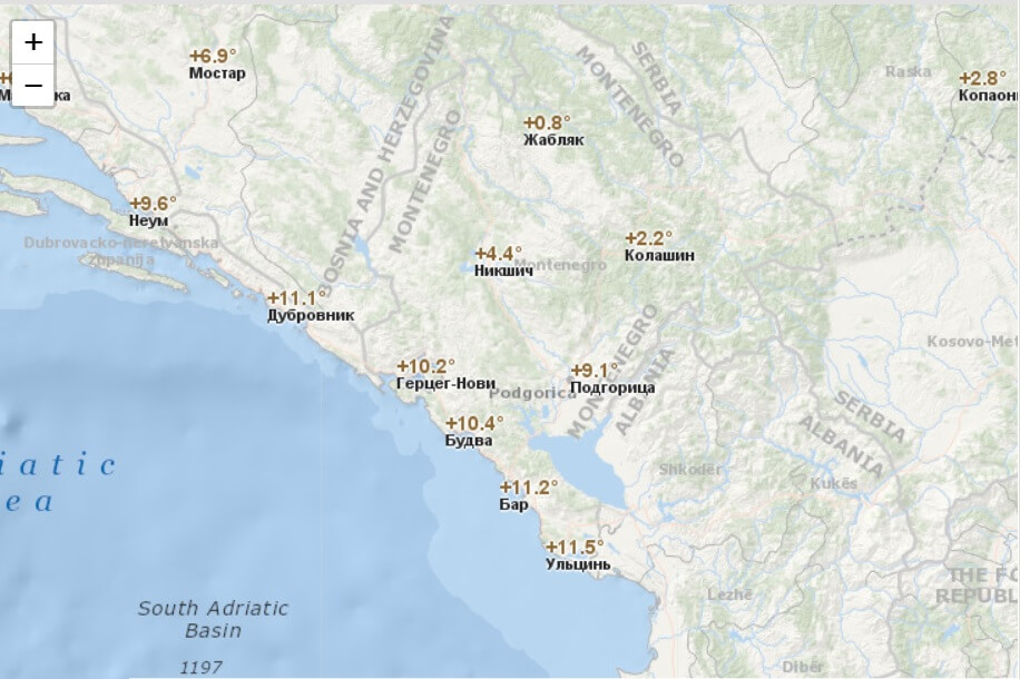 Где тепло в Черногории в феврале на 2021/2022 год?