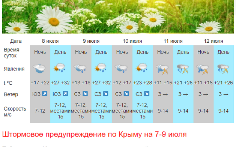 | Прибрежное | 11,8°С | 8,0°С | 37,9% | 1 день (24,1 мм.) | 13,6°С | 6 ч. 55 мин. |