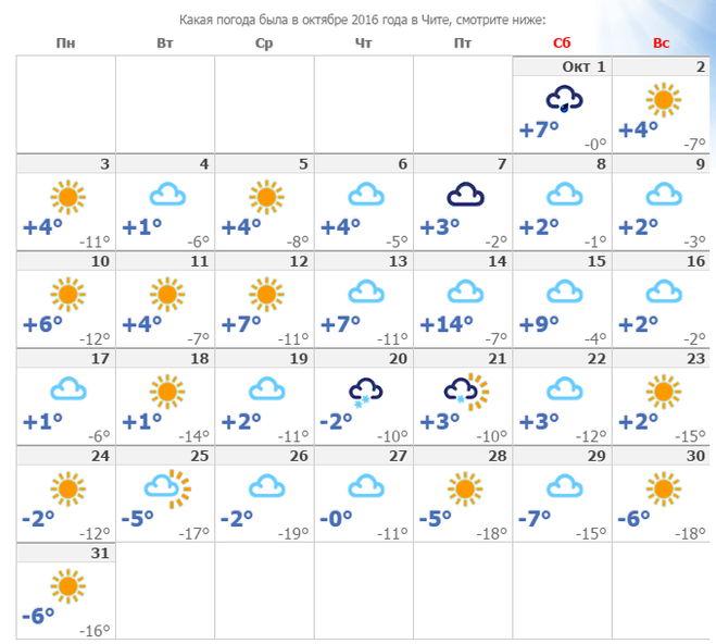 Также полезно посмотреть соседние месяцы: погоду в сентябре и в ноябре.