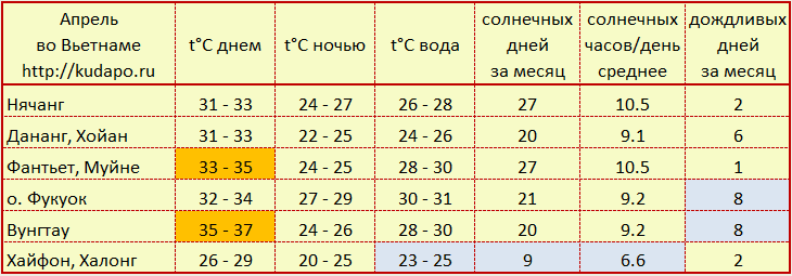 - Погода во Вьетнаме в апреле: рейтинг 4.2 (из 5), воздух +31.7°C , море: +26.9°C, дождь 12 дней