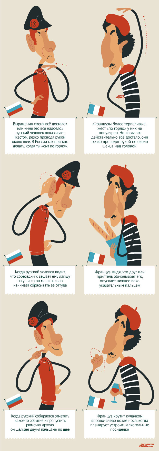 Кстати, не забывайте, что Франция – это родина пантомимы. Порой невербальные средства коммуникации значат очень много и для комфортного общения важно их понимать. Заранее проглядите и постарайтесь запомнить топ популярных французских жестов. Чтобы при встрече не впасть в недоумение, если французский друг начнёт вдруг тянуть себя за нижнее веко или складывать пальцы «уточкой». А чтобы обрести окончательную уверенность и при первой же возможности свободно пообщаться с друзьями и коллегами из Франции – не забудьте про курсы французского.
