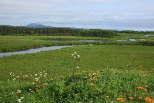 А вот на севере климат суровее, рельеф ровнее, а потому местность сильно заболочена. Зато много мхов, лишайников и ягеля. Эти места нередко окружены лугами, где преобладает осока и разные травы. И на самом севере острова опять начинаются леса — таежные, хвойные, с богатейшими запасами кедров, голубики и багульника.