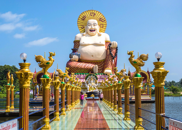 Статуя Большого Будды. Большой Будда — это двенадцатиметровая статуя Будды, которая находится на вершине церемониальных драконьих ступеней храма Ват Пхра Яй. На Самуи также есть ряд других впечатляющих храмов, в том числе Ват Кунарам, где выставлено мумифицированное тело Лоунга Пордаенга, монаха, умершего в позе медитации.