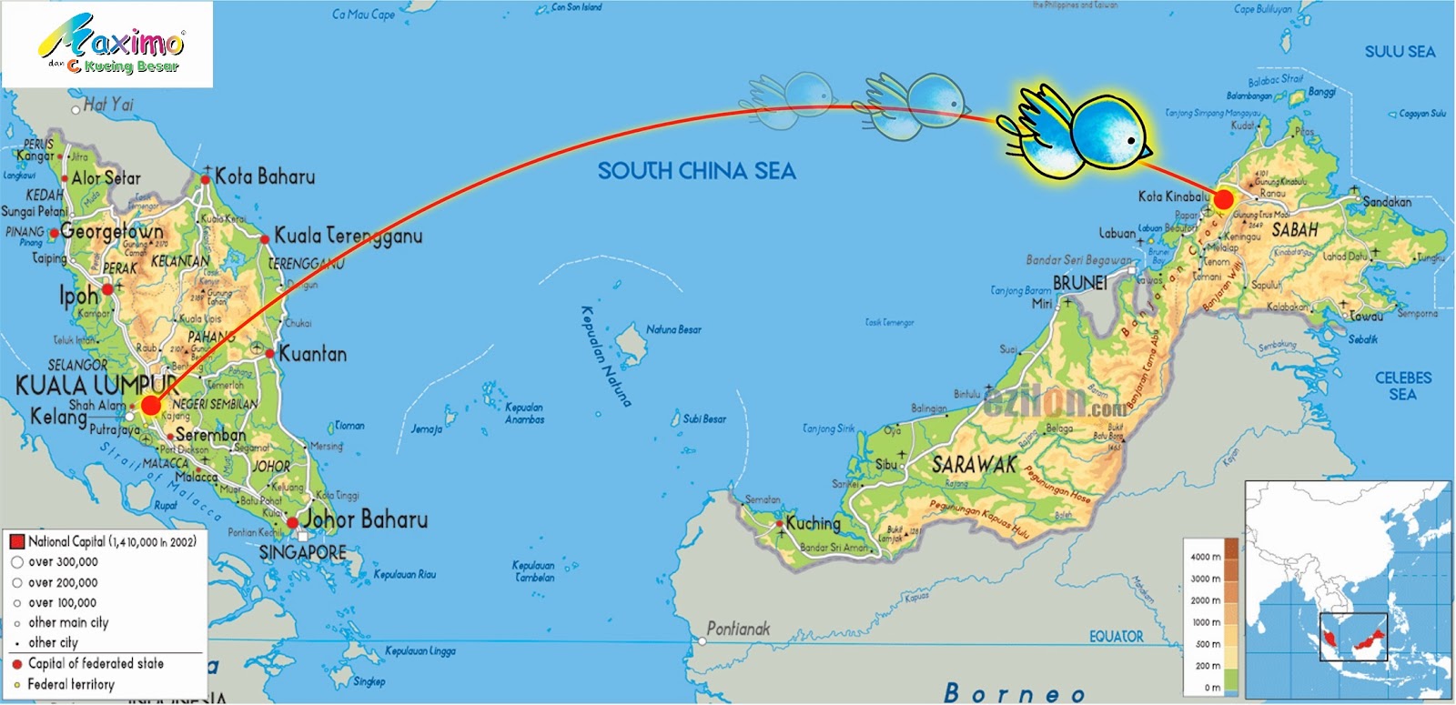 - Столица — Куала-Лумпур (Kuala Lumpur), крупные города — Джохор-Бару (Johor Bahru), Джорджтаун (Georgetown), Куантан (Kuantan), Ипо (Ipo), Кота-Бару (Kota Bahru).