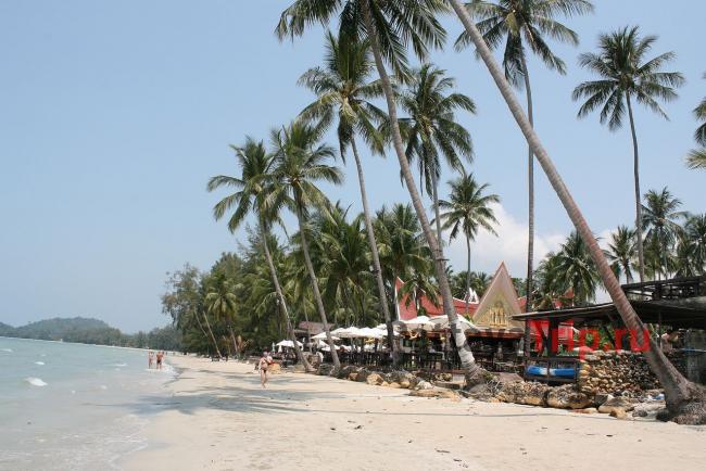 Пляж усеян высокими пальмами, и в дополнение к местам в первом ряду, где можно полюбоваться закатом, вы также сможете увидеть силуэты холмов вдалеке. Нет необходимости говорить, что это один из лучших пляжей на Ко Чанге.