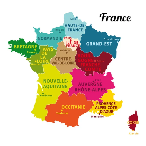 | Новая Аквитания Бретань Бургундия-Франш-Конте Нормандия Иль-де-Франс | Корсика Окситания Гранд-Эст О-де-Франс | Овернь-Рона-Альпы Земли Луары Прованс-Альпы-Лазурный берег Центр-Долина Луары |
