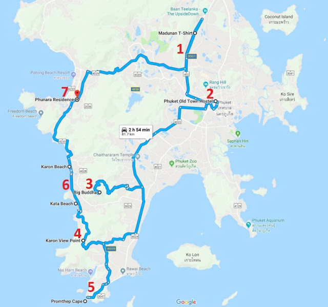 Расстояние между Патонгом и Старым городом Пхукета составляет 10 км. Протяженность дороги 16,2 км.