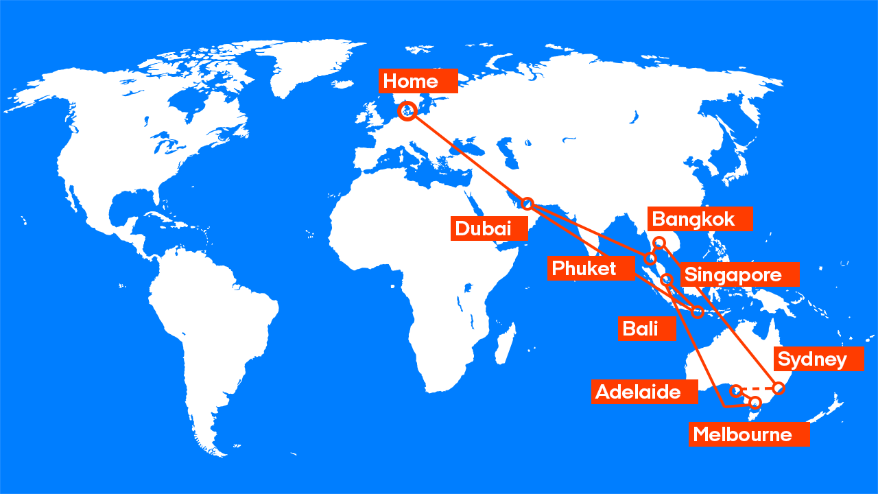 - Финский перевозчик Finnair доставит туристов из Москвы в азиатский город за 17 часов 10 минут. Стыковка в Хельсинки по времени продлится 3 часа 45 минут.