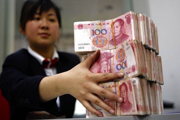 Официальное обозначение ¥, на китайском 元 Renminbi, юань или самое ходовое слово — куай (у.е.)