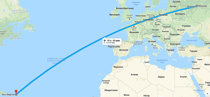 В случае прямого перелета продолжительность в пути составит около 4:00-4:30 часов.
