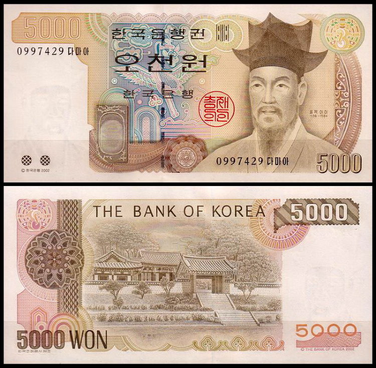 | 50 вон | 100 южнокорейских вон | 0,07528 9 долларов США0059 | |